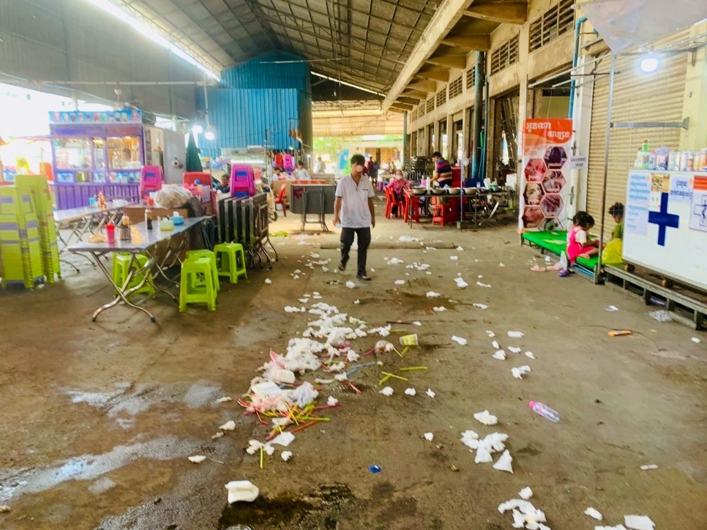 ゴミのポイ捨てなどは市場に限ったことではない。どこでもプラスチック容器や食べた容器など外に捨てている。分別など皆無である。プラスチックなどは半永久的に分解されず残るなど知識がないのかもしれない。仕方ないのか?ゴミ処理場の限界も囁かれているのも事実である。